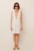 The Maha Tunic Mini Dress is a crisp mini-length style designed with a deep V-neckline, clean lines, and a structured drape. Hidden pockets add ease, making it an effortless piece for warm days and everyday wear.
