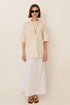 Fresca, con textura, infinitamente versátil. La falda Zoe en seersucker blanco a tono aporta una sutil dimensión a una silueta atemporal. Su tejido ligeramente arrugado capta la luz y combina a la perfección con todo, desde tops de sastre hasta camisetas desgastadas. Diseñada para ajustarse cómodamente a la cintura, con una caída fluida y maxi que se mueve contigo. Ligera, sencilla, ideal para los días cálidos de paseo.
