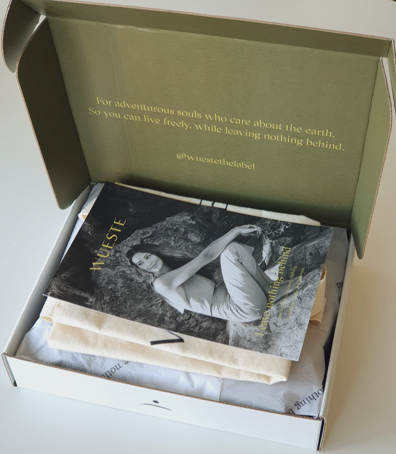 The apparel industry’s impact reaches far beyond its garments, creating waste at every turn. At WUESTE, we journey differently. Our fully customized packaging meets the needs of both our customers and the planet, embodying our commitment to sustainability.