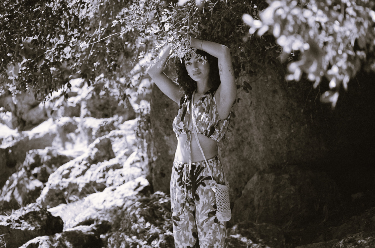 Koko Bralet and Alo Drawstring Pants in tree of life