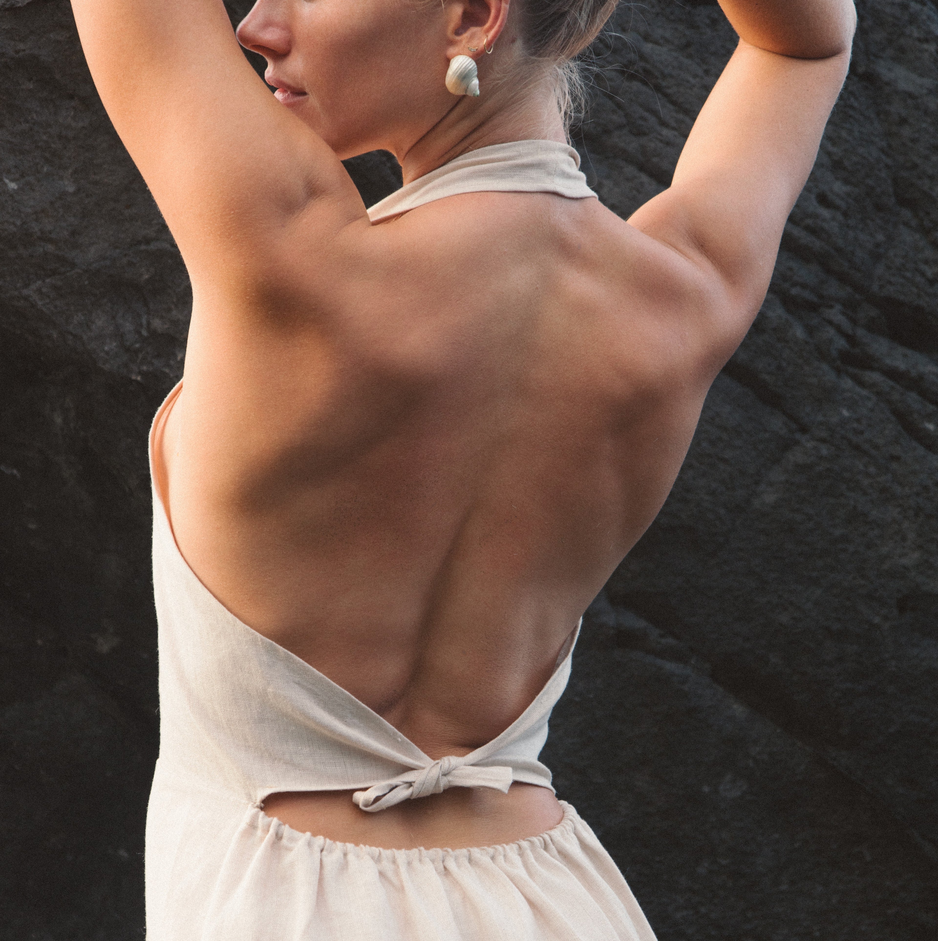 A capsule built for warm breezes and slow, coastal days. Cartagena Cool combines your sleek black halter set with the lightness of the calico-print halter dress—creating a balance of polished and playful. The result is a travel-ready trio that moves easily from daytime markets to seaside dinners. Breezy, modern, and unmistakably effortless.