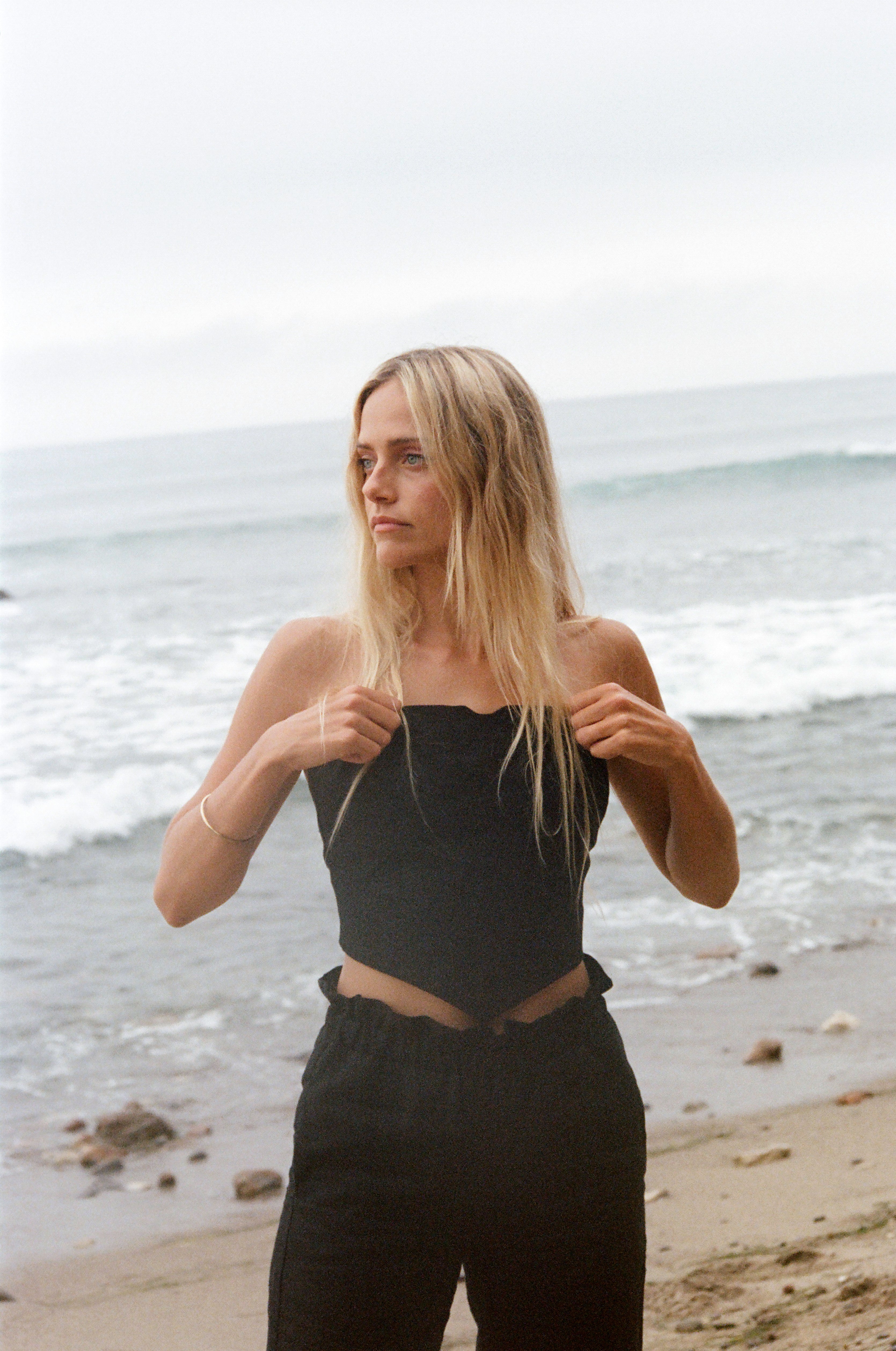 A capsule that blends island-edge minimalism with a soft, modern print. Palermo Bloom pairs your sleek black Sofia bandeau set with a monochrome floral mini—creating a trio that feels both bold and quietly feminine. The palette is timeless, the silhouettes travel-ready, and the mood effortlessly elevated. Perfect for warm nights, coastal dinners, and wandering through sunlit streets with just a hint of romance.